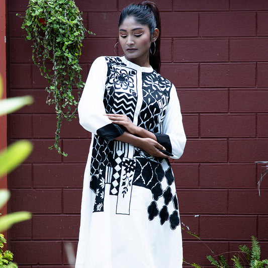 White and black applique dress