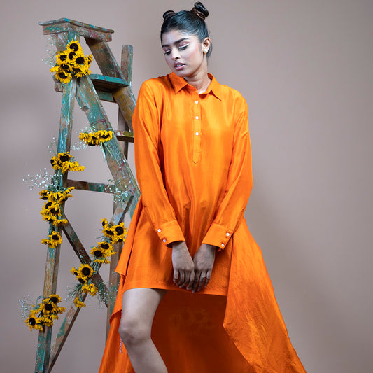 Orange short shirt dress