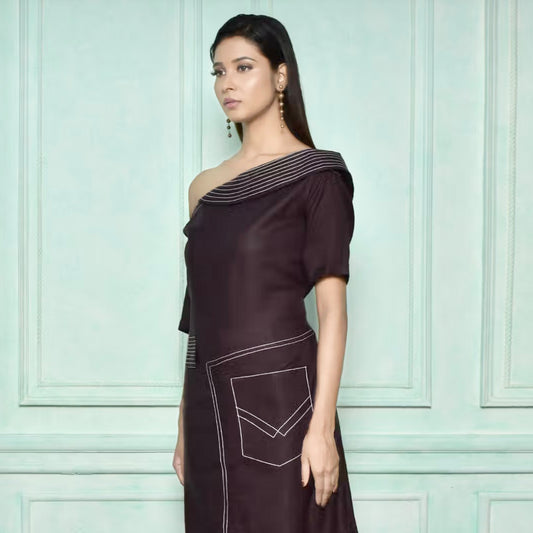 One side drop shoulder dress