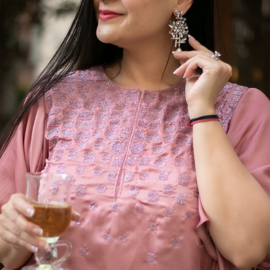 Pink hand embellished high low dress