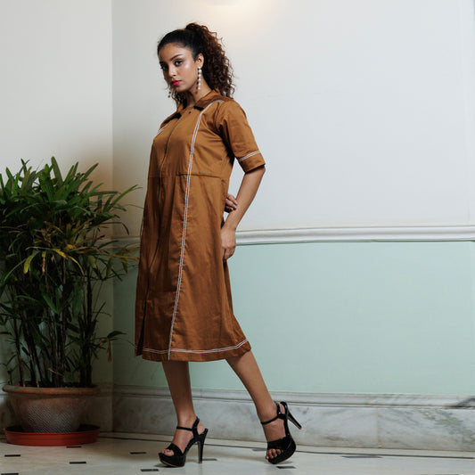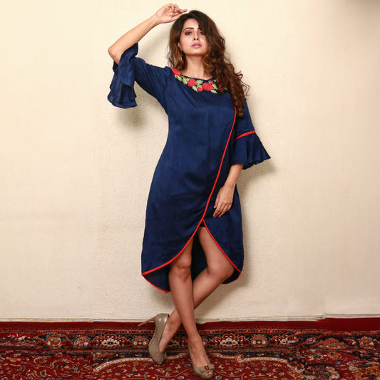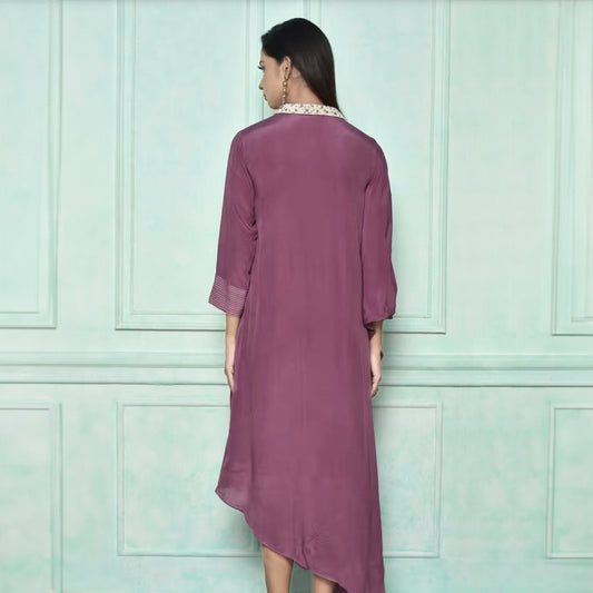 High low shirt dress with neck embroidery