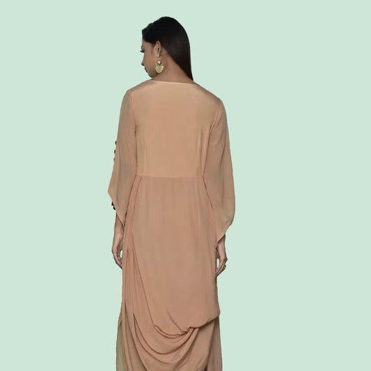V cut dress with hand work belt