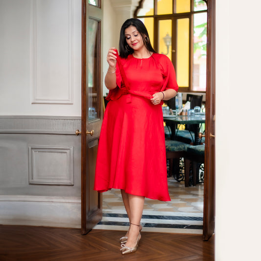 Red dress with tie on belt