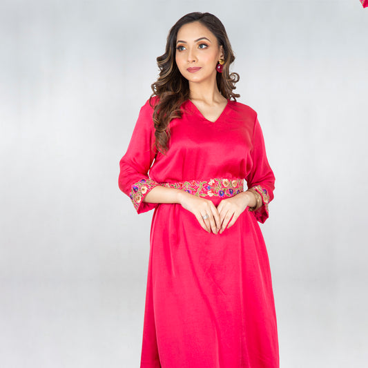 Red hand embroidery dress