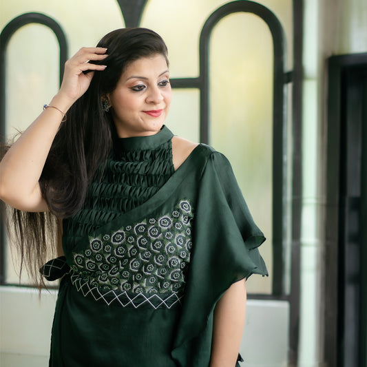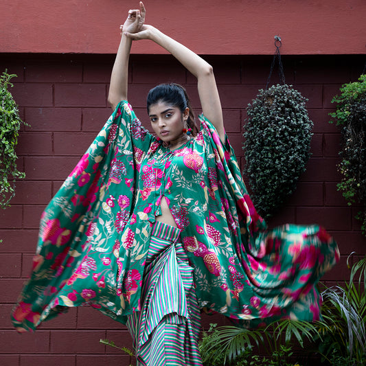 Green flowey cape with drape skirt