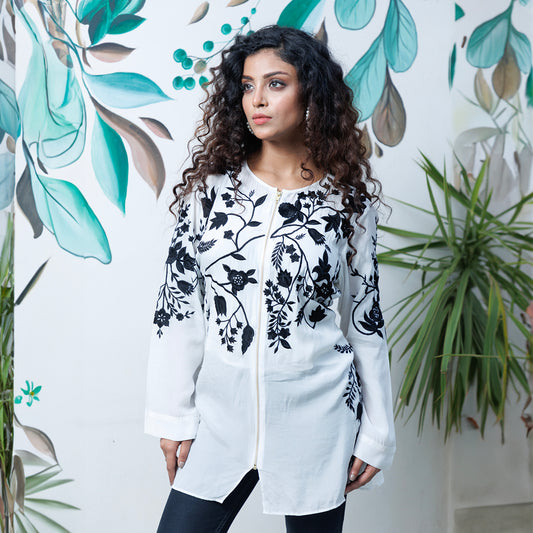 White crepe top with embroidery